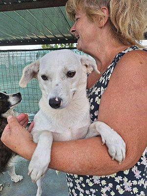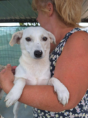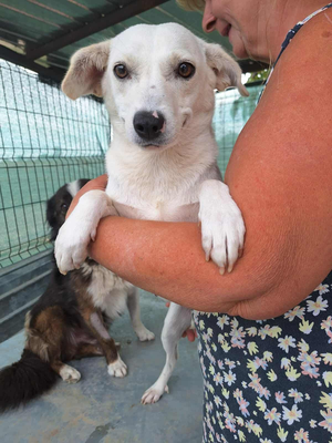 Nika wurde von den Hundefängern ins Tierheim gebracht. Das Gewusel der vielen anderen Hunde ist ihr jedoch zu viel. Und da sie Ärger lieber aus dem Weg geht, lebte sie fast ausschließlich in ihrer Hütte.  Holt man sie jedoch dort heraus, stellt man schnell fest, dass man ein liebes schüchterner Mäuschen auf dem Arm hat, das eigentlich beim Menschen andocken möchte.