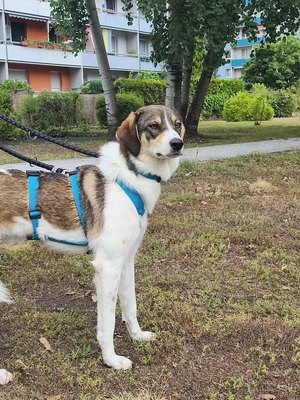 Der 15 Monate junge Rüde (60 cm, 25 kg, kastriert) lebt derzeit in 03048 Cottbus und wartet sehnsüchtig auf sein Für-immer-Zuhause. Er ist stubenrein, ein angenehmer Mitbewohner, verträglich mit Hunden und Katzen und auch mit älteren Kindern unkompliziert.