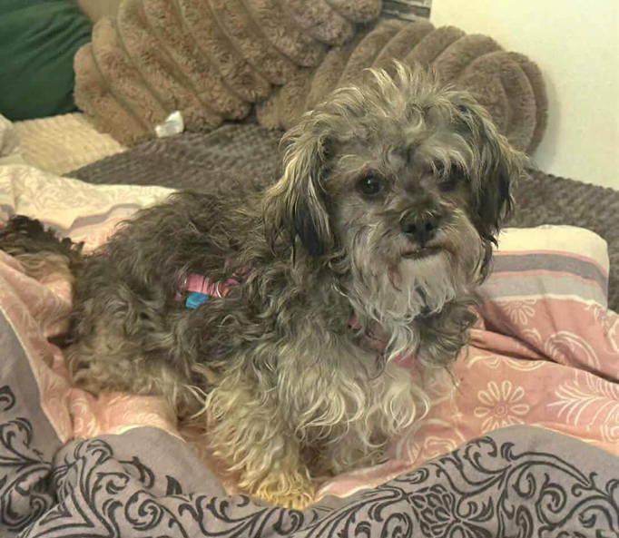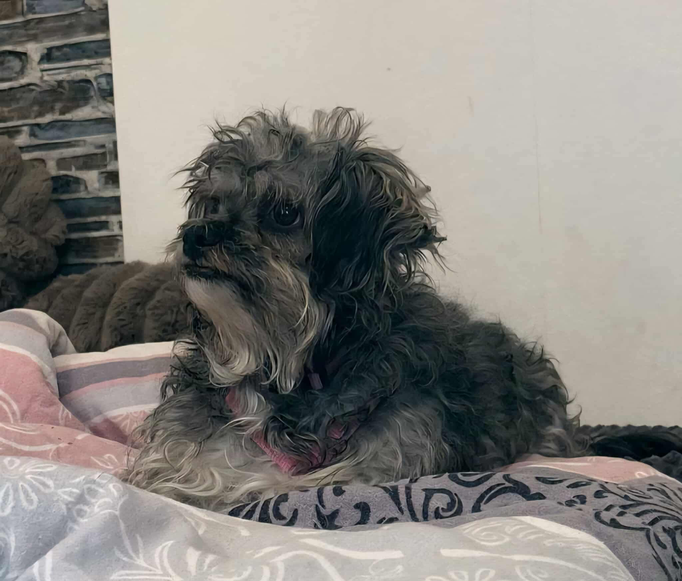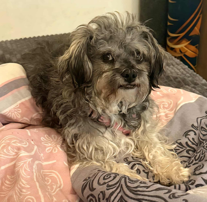 Joline ist eine sanfte, ruhige Hündin mit etwa 25 cm Schulterhöhe und rund 6 kg Leichtgewicht – perfekt zum Kuscheln und für gemütliche Spaziergänge. Sie bellt so gut wie nie und begegnet Fremden zunächst mit etwas Zurückhaltung, doch wenn sie Vertrauen gefasst hat, zeigt sie ihr fröhliches, liebevolles Wesen.