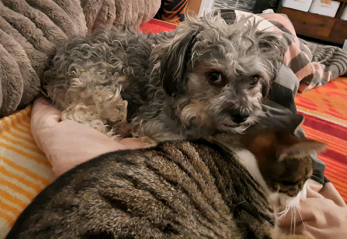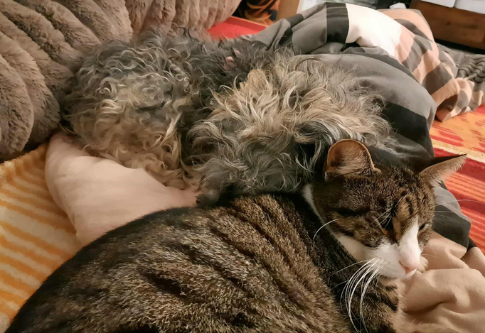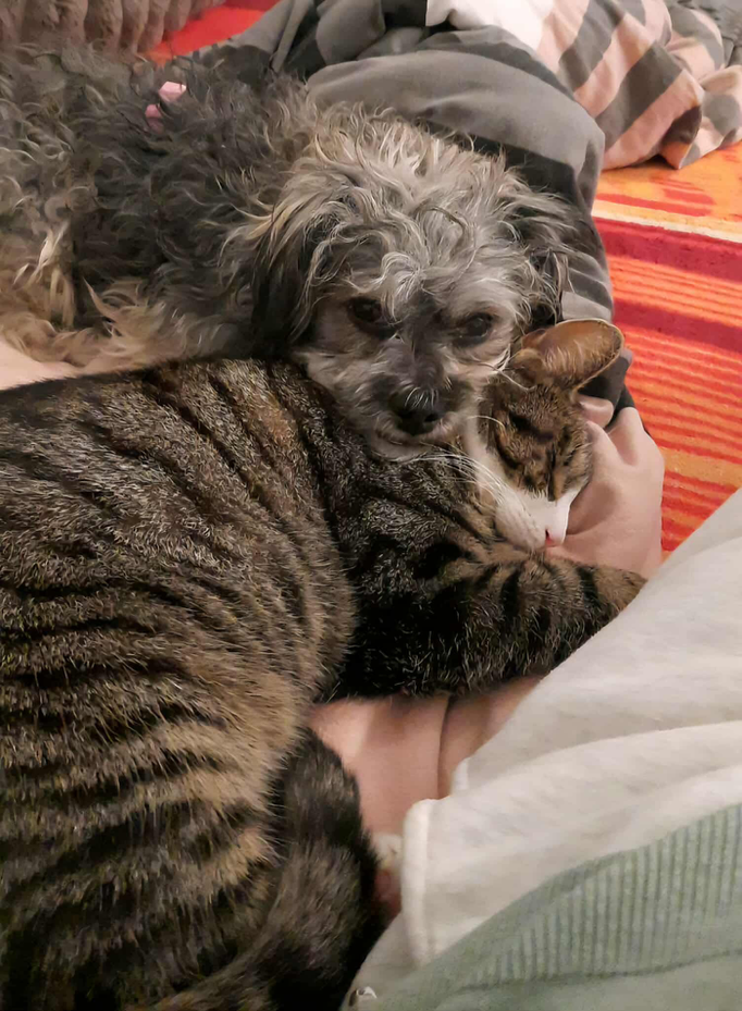 Auch mit Katzen versteht sich Joline sehr gut – sie zeigt sich ihnen gegenüber freundlich und gelassen, sodass einem harmonischen Zusammenleben nichts im Wege steht.