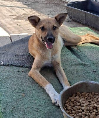 Die junge Hündin spielt voller Begeisterung und zeigt sich dabei lebendig und ausgelassen. Sie bringt eine sportliche Energie mit und wünscht sich ein Zuhause, das