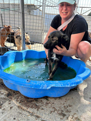 Penny ist eine etwa fünf bis sechs Monate alte Hündin, die aktuell in unserem Partnertierheim in Sascut lebt. Mit ihren rund 40–45 cm Schulterhöhe und etwa 10 kg bringt sie jetzt schon eine mittelgroße Statur mit, wird aber noch etwas wachsen.