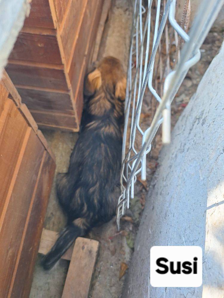 Auch die neue Hündin Rani kam im April 2024 ins Tierheim. Rani bellt lautstark, wenn sich Menschen dem Zwinger zuwenden und geht auf Abwehrhaltung. Schnell merkt sie, dass wir ihr nichts Böses